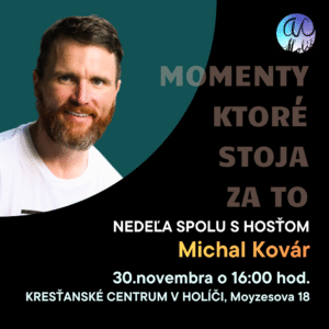 V nedeľu 30.novembra máme špeciálneho hosťa Michala Kovára, jedného z vedúcich mládeže ISKEJP, pracovníka TEEN CHALLENGE a dobrovoľníka na rôznych kresťanských podujatiach (aj MYFEST)… Nedeľa spolu – to sú momenty, ktoré stoja za to. Pridajte sa v nedeľu už od 15:30 hod.