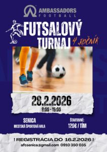 Už 4.ročník futsalového turnaja je tu. Sobota 28.februára od 9:00 do 15:00 hod. v Športovej hale v Senici. Ak sa chcete pridať ako tím, registrujte sa – viď email na plagátiku. Ak sa chcete prísť pozrieť ako diváci a fanúšikovia, budeme radi.